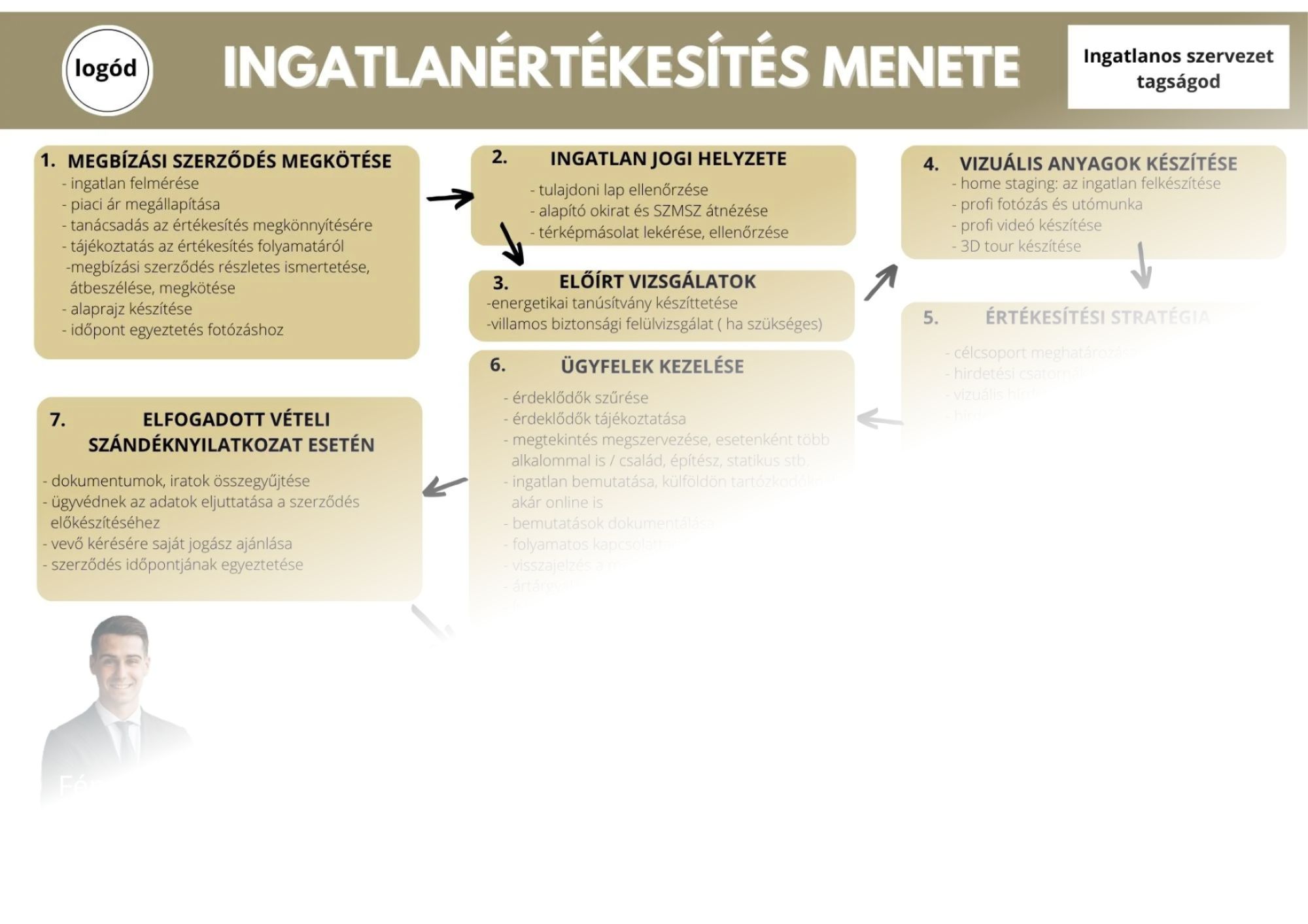 Egy jól felépített, vizuálisan átlátható anyag nemcsak profizmust sugároz, hanem bizalmat is épít a megbízóval. Segít megérteni, pontosan mi történik az értékesítés során, milyen lépések várhatók, és milyen értéket képvisel a közvetítő munkája. Így az ügyfél nem érzékeli az értékesítés menetét bizonytalannak vagy kiszámíthatatlannak – sokkal inkább kiszámíthatónak és professzionálisnak. Ez nemcsak megerősíti a megbízást, de növeli az elégedettséget és a további ajánlások esélyét is.